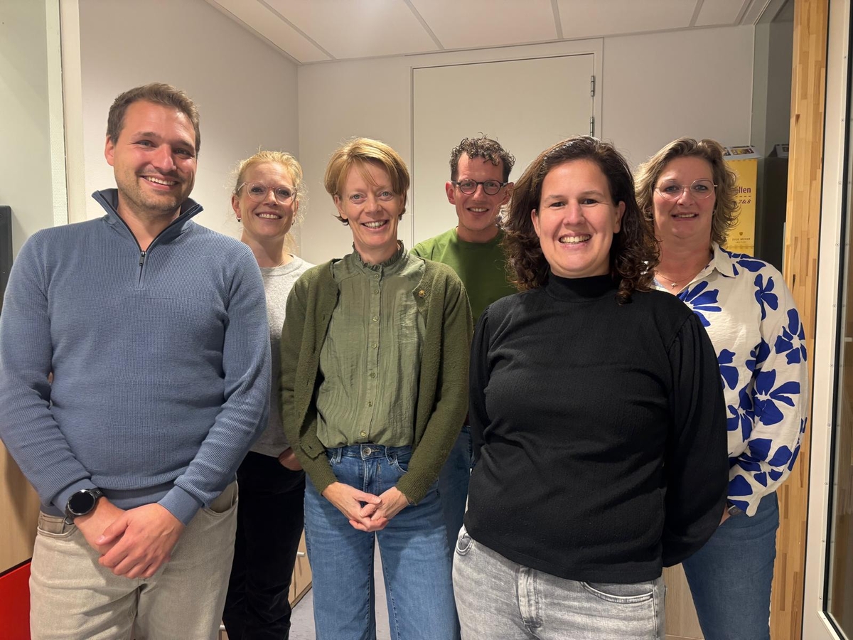 Rij 1 van links naar rechts: Lars, Ineke, JeanetRij 2 van links naar rechts: Marianne, Jaap Jan, Afelien.